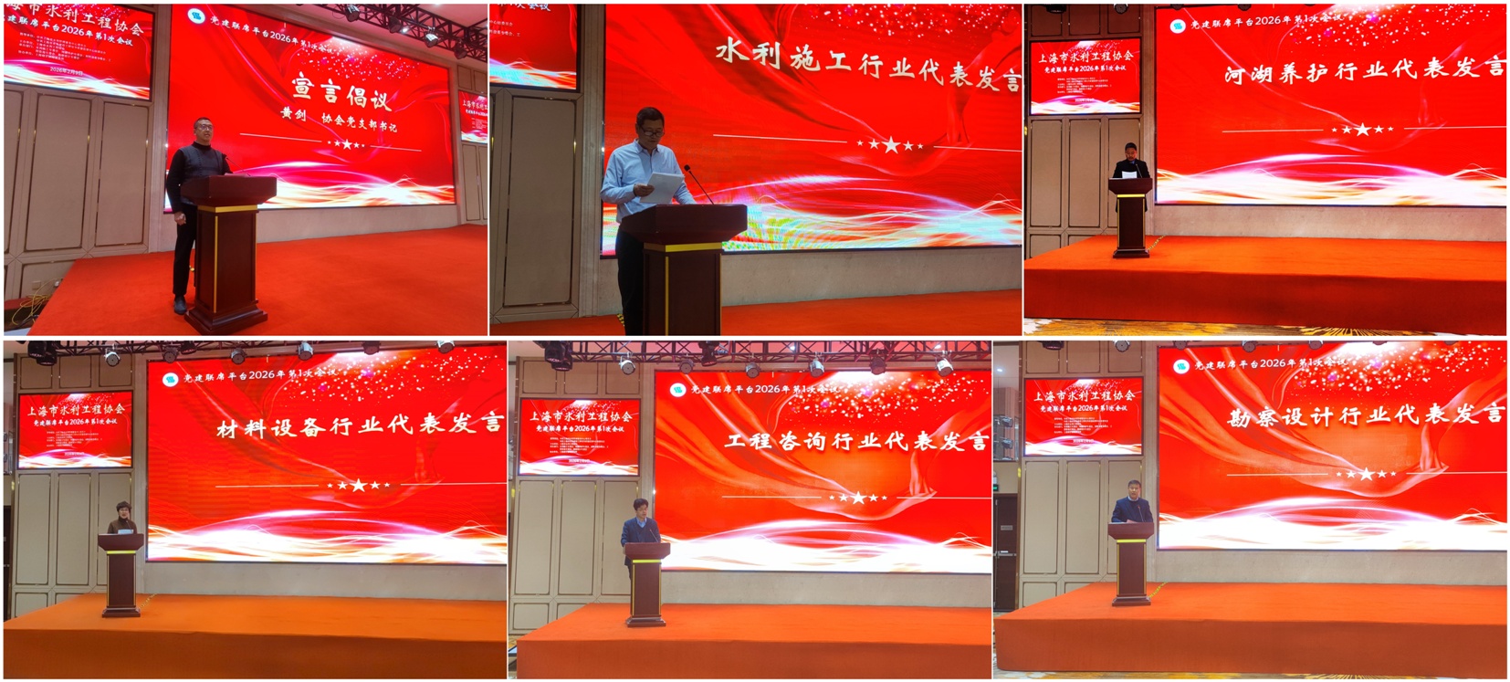 随后,由水利施工、河湖养护、材料设备、工程咨询、勘察设计五个领域的行业代表依次作表态发言,郑重承诺积极响应倡议、践行合规要求。