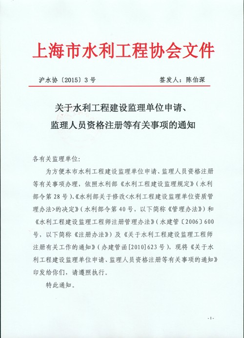 关于水利工程建设监理单位申请、监理人员资格注册等有关事项的通知