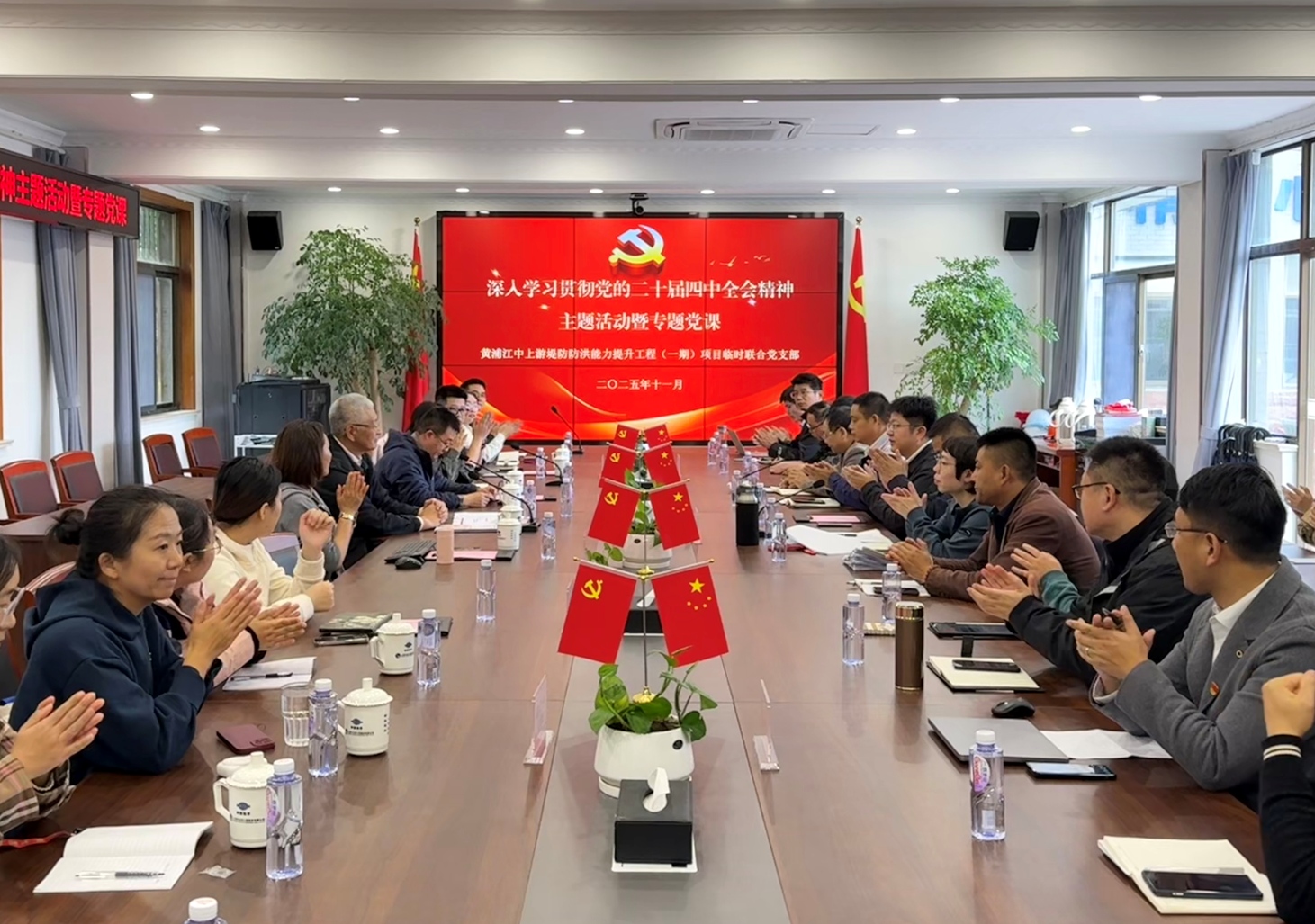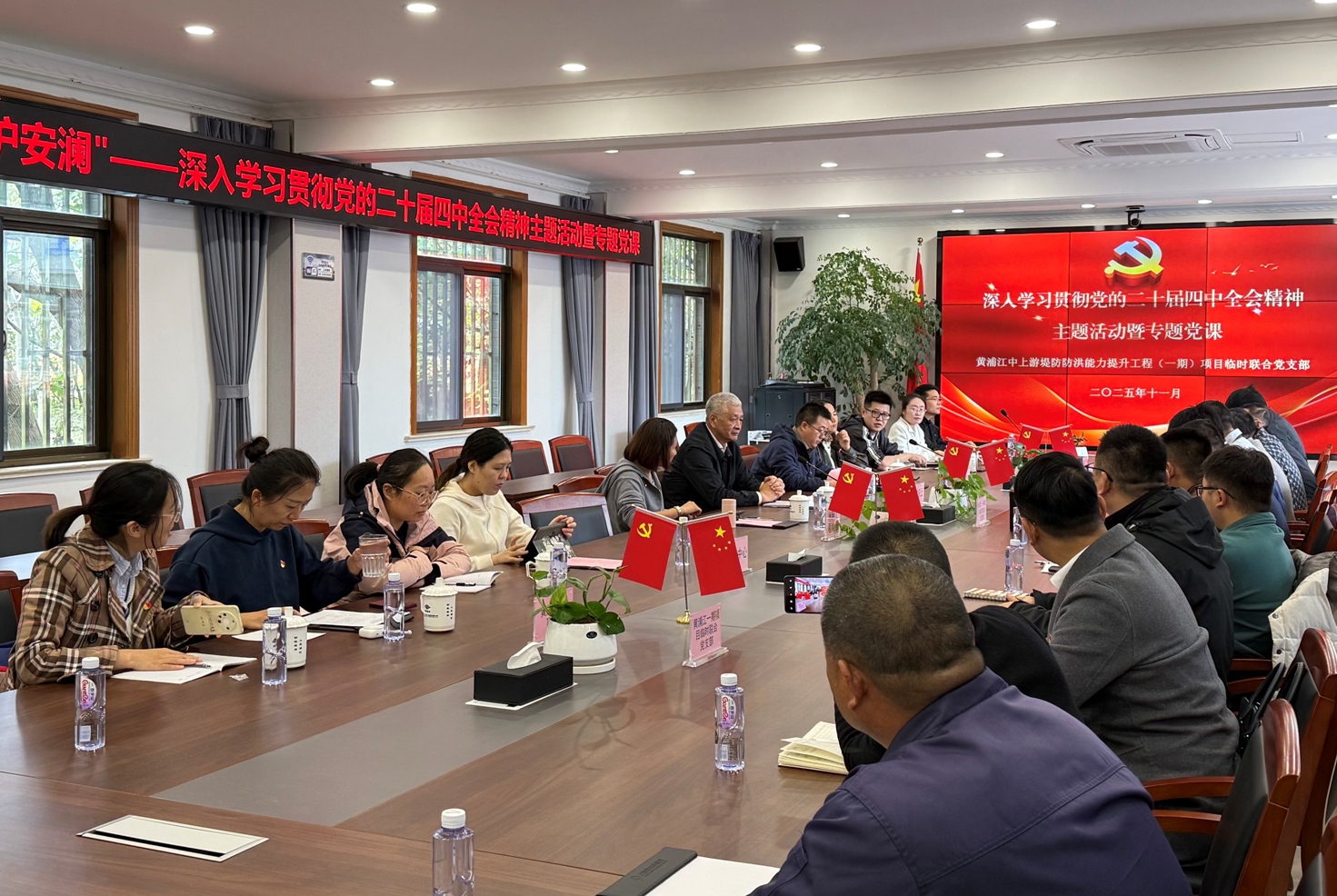11月11日下午,协会与上海市堤防泵闸建设运行中心、上海市水利工程集团有限公司在松江区薛家村黄浦江(一期)项目指挥部联合举办党建联建暨深入贯彻党的二十届四中全会精神专题辅导党课活动,三家单位相关领导和党员代表参加本次活动。