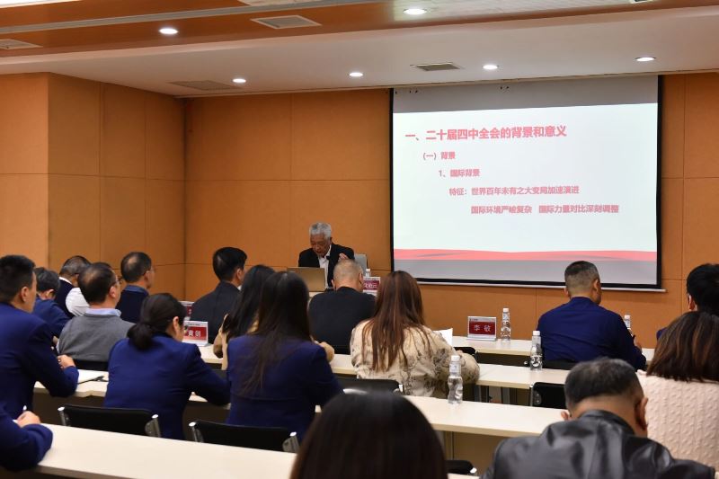 随后,沈依云会长为全体与会人员上了“学习贯彻二十届四中全会精神,努力开创十五五水务工作新局面”为主题的党课。沈会长着重从三个方面讲解他对二十届四中全会精神学习的认识和体会。在二十届四中全会的背景和意义部分,他主要讲了国际和国内两大历史背景,让我们从世界百年未有之大变局和国内“十四五”的伟大成就中,去认识和把握“十五五”新征程、新要求。在“十五五”规划建议的主要内容部分,围绕“指导思想、主要目标、基本原则、战略任务和举措”等做解读;在对上海水务“十五五”发展的几点思考部分,围绕“城市更安全,供水更优质,环境更优美,管理更科学”提出了自己的见解和想法。沈依云会长的党课,体系完整、重点突出,既有理论深度,又紧密结合水利行业发展实际,为与会人员深刻领会二十届四中全会精神提供了启示。