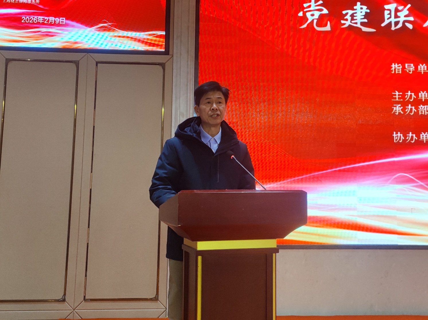 2月9日下午,上海市水利工程协会党建联席平台2026年第一次活动在杨浦区顺利举行。本次活动以“守法经营、合规发展”为主题,旨在凝聚行业共识,推动上海水利行业形成规范有序、风清气正的市场环境。市水利管理事务中心党委、市水务建设工程安全质量监督中心站党委、协会班子成员、秘书处各部门、各专委会和协会党建联席平台成员单位党组织负责人、企业负责人、党员代表约100多人参加此次活动。